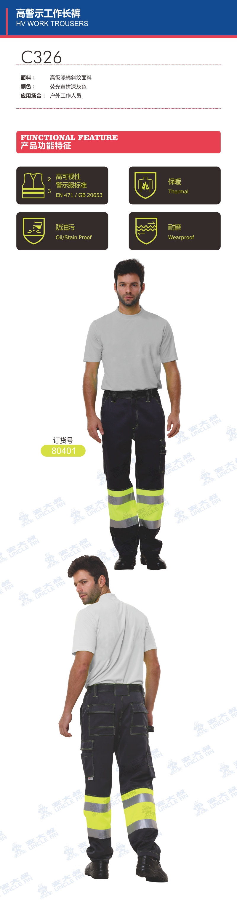 高警示工作長褲