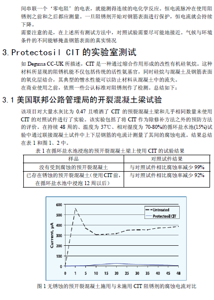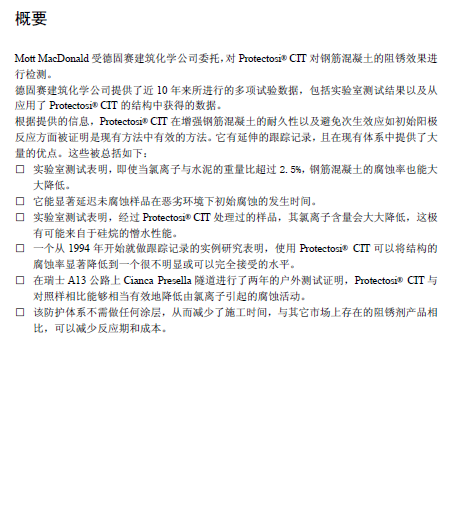 Protectosil CIT是德固賽的一種硅烷產(chǎn)品,可以滲入混凝土,產(chǎn)生一種有機(jī)分子,從而阻抑混凝土當(dāng)中氯離子、氧離子和水分與鋼筋產(chǎn)生的電化學(xué)腐蝕。