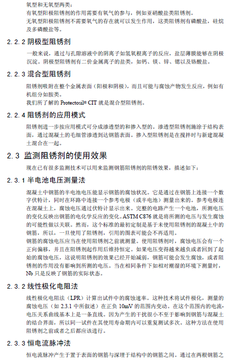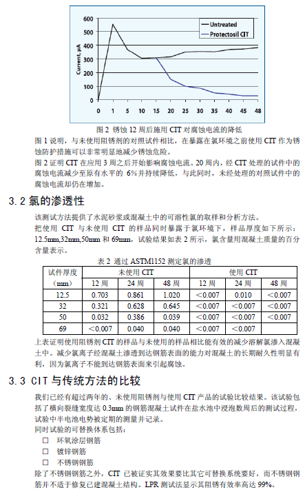 1、通過(guò)自身活性材料和水泥相位化學(xué)反應(yīng)大大降低鋼筋混凝土中由氯離子引起的腐蝕速度。
