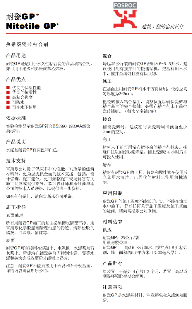 耐瓷Nitotile GP熱帶級瓷磚粘合劑