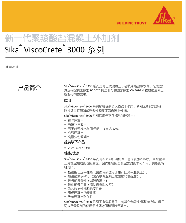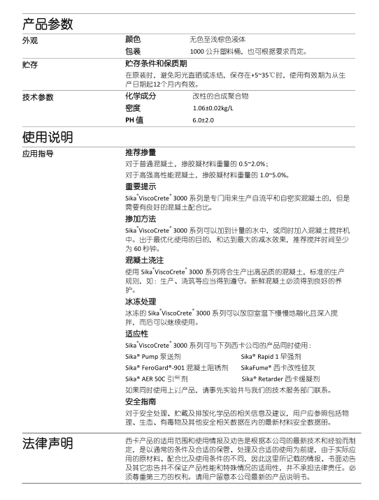 西卡減水劑Sika ViscoCrete3301C