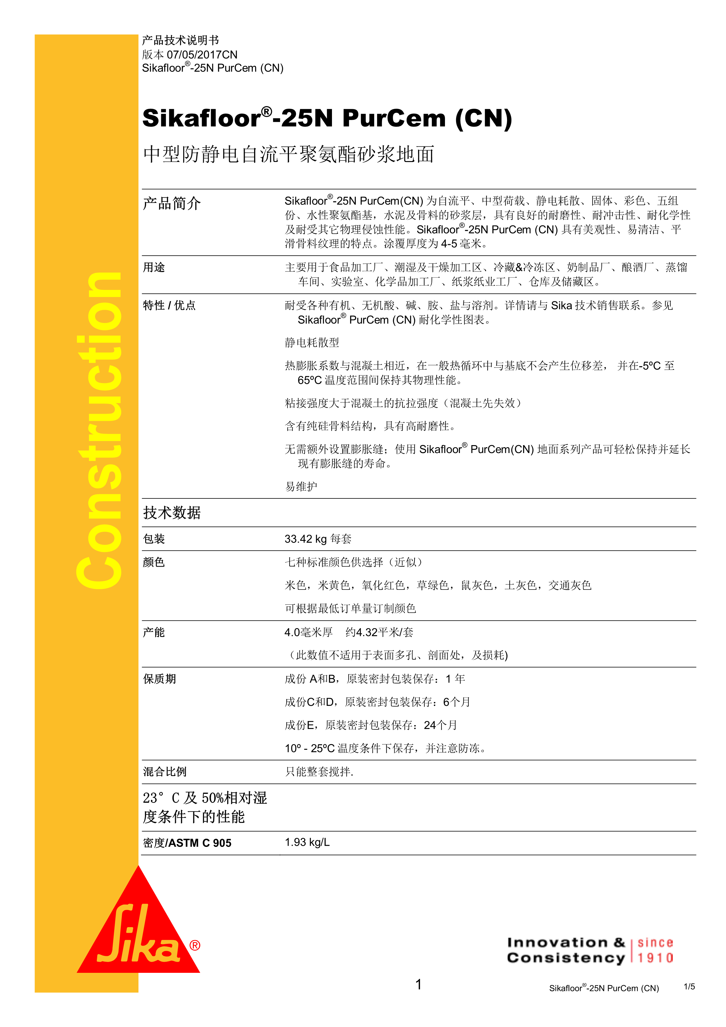 西卡防靜電自流平聚氨酯砂漿地坪Sikafloor 25N PurCem