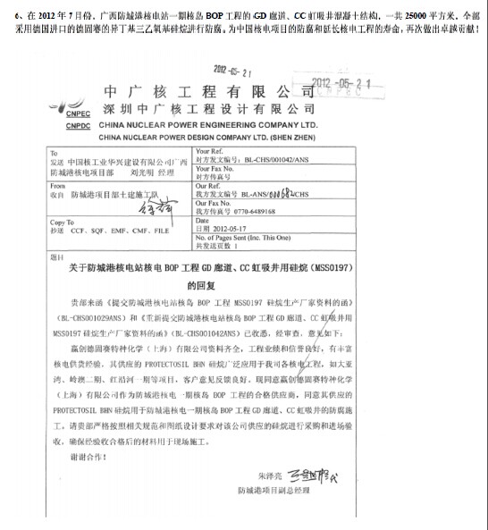 熱烈慶祝我司中標(biāo)防城港核電二期西卡阻銹劑
